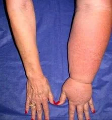 Lymphoedema in the arm of a breast cancer patient. Image downloaded 26 April 2019 from https://lymphaticsolutions.com.au/early-detection-for-breast-cancer-related-lymphedema/